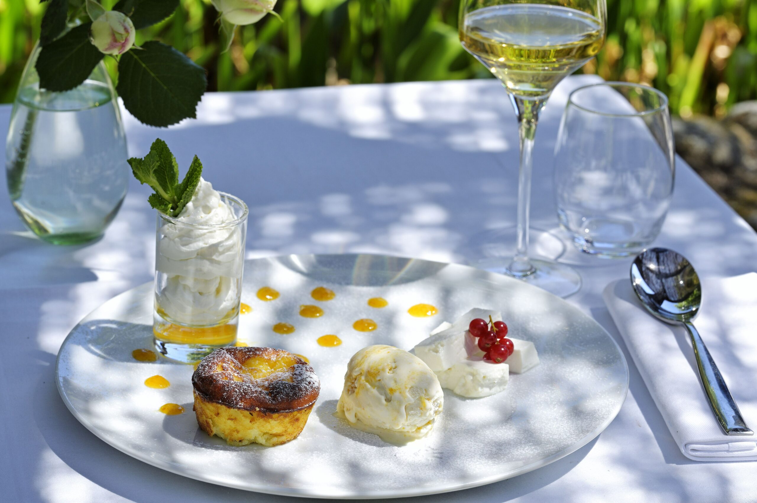 Le lieu semble suspendu entre ciel et eau. L’architecture épurée laisse toute la place au paysage, tandis que la lumière méditerranéenne accompagne chaque instant. Ici, le regard voyage autant que l’assiette. La cuisine, fine et inspirée, sublime les produits de saison avec précision et élégance. Les saveurs sont justes, les textures délicates, pensées comme une prolongation naturelle du décor. Chaque plat s’inscrit dans une expérience globale, où l’on savoure autant l’instant que le repas. Aux Roches Rouges, le déjeuner devient un moment d’exception, une pause contemplative où le luxe se mesure à la beauté du cadre et à la qualité du temps passé.